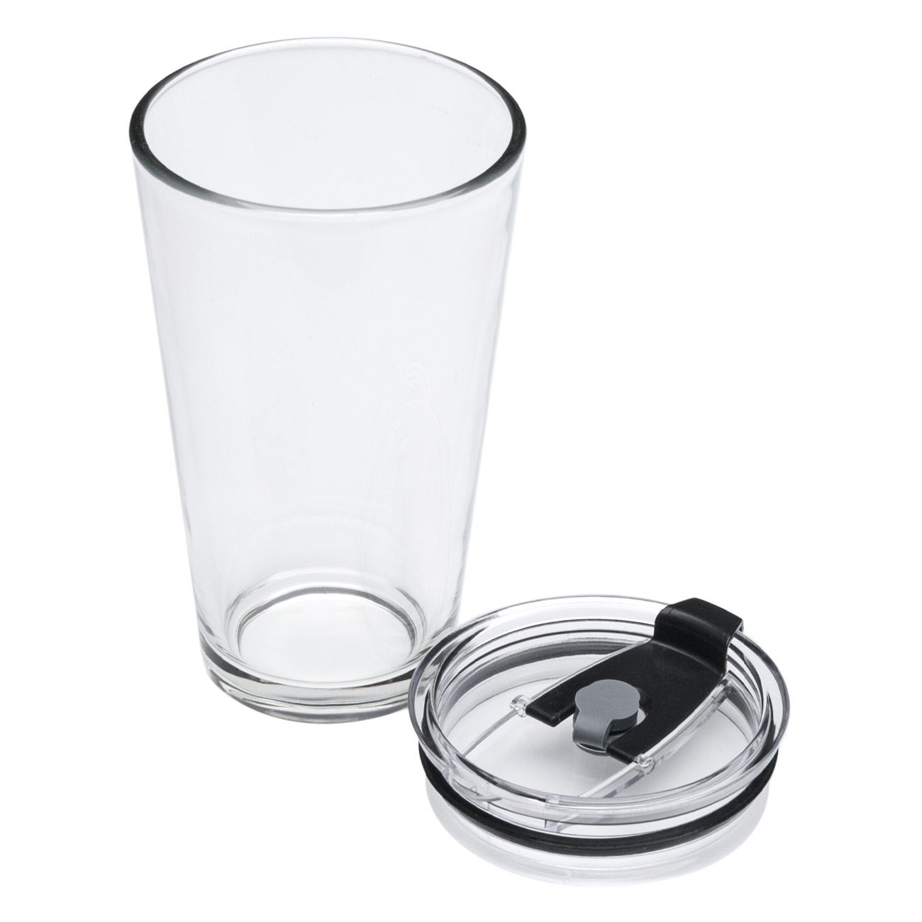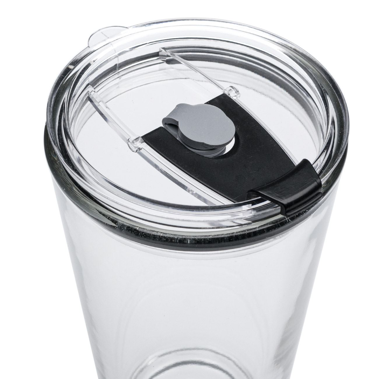 Cana cafea voiaj sticla, transparent, cu capac de plastic cu inchidere, 455ml