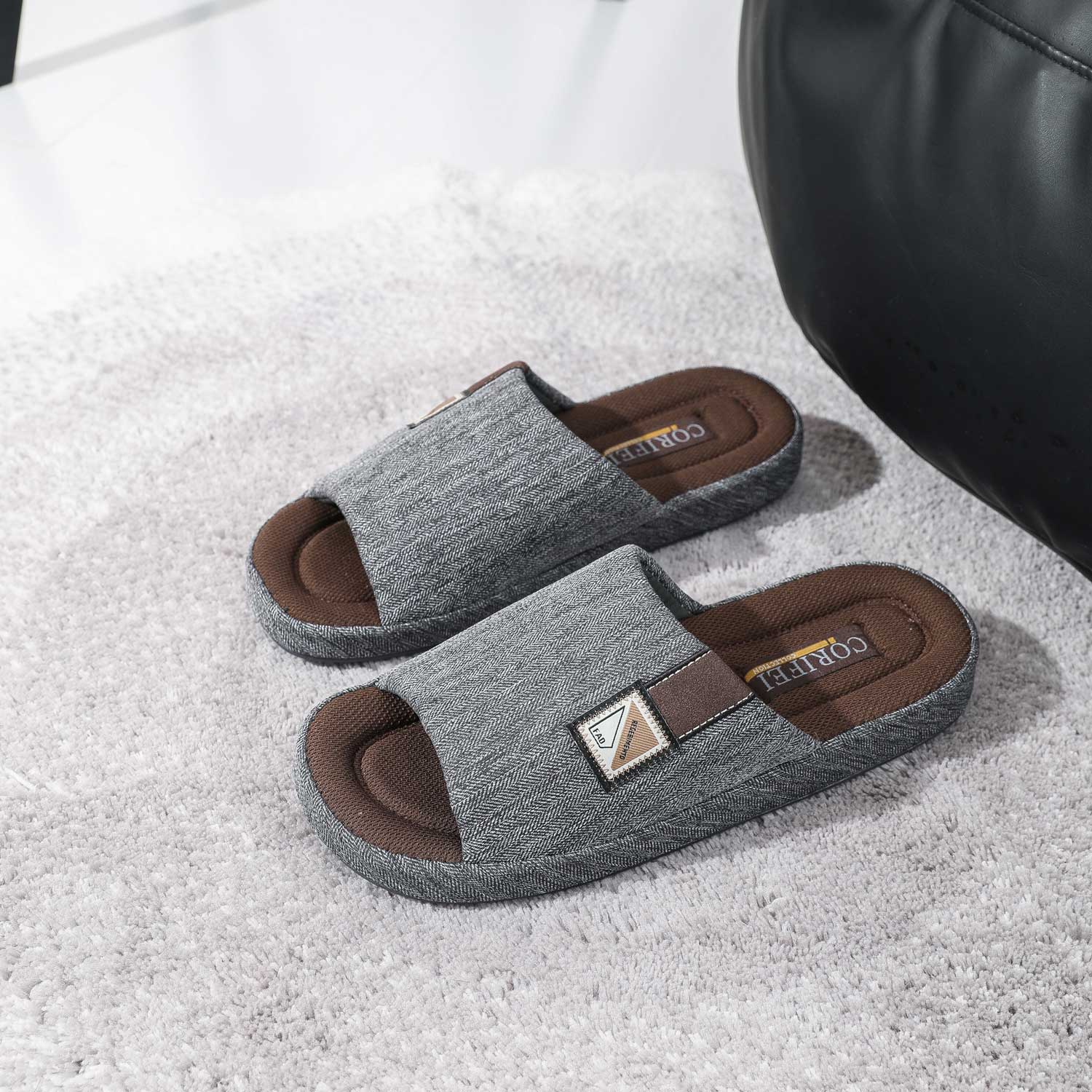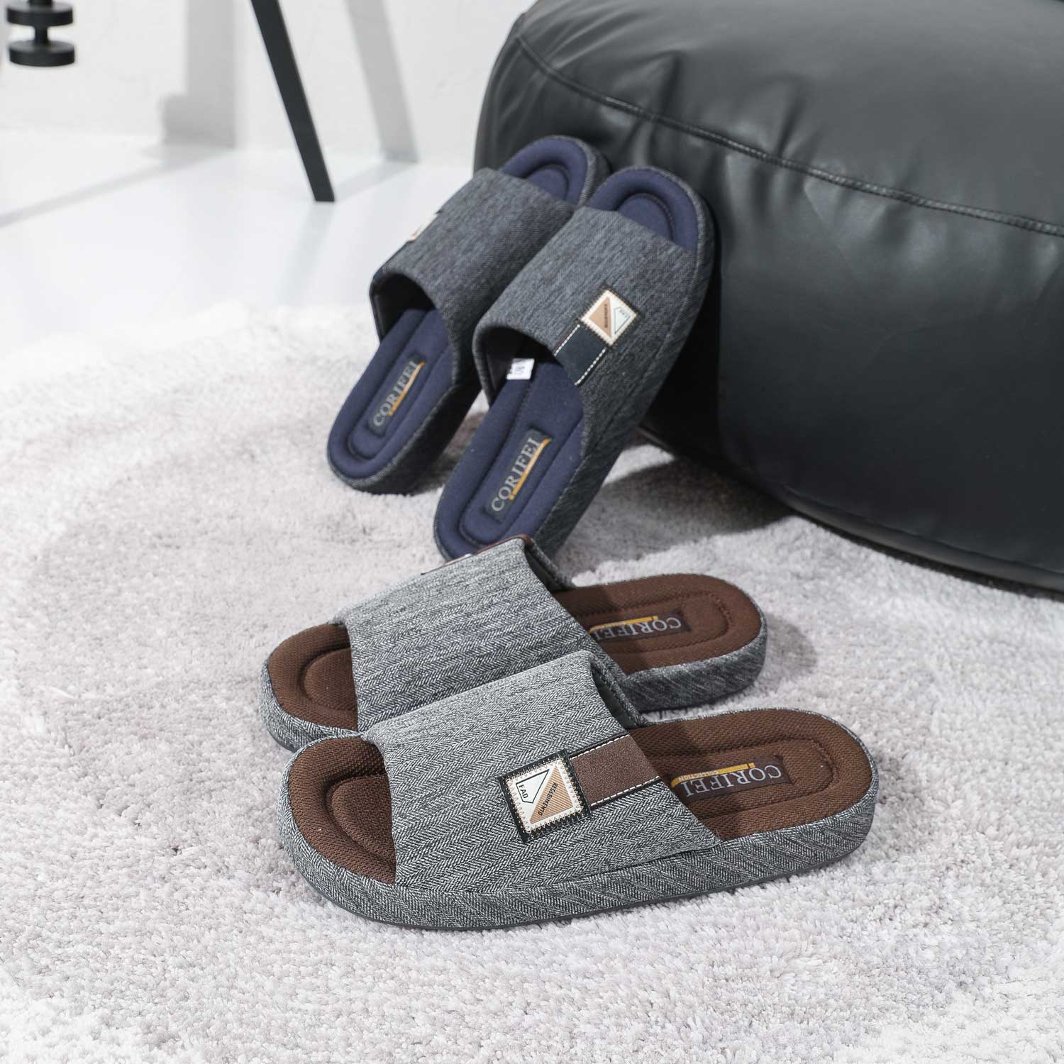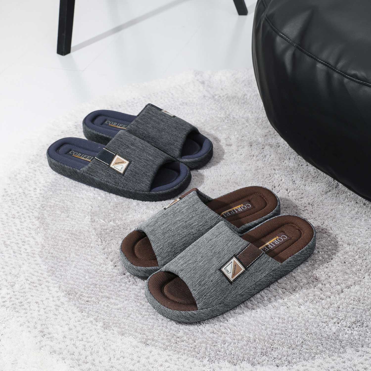 Papuci de casa barbati, eleganti, casual, papuci de vara, talpa groasa, model zig-zag, maro, Callena