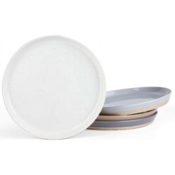 Set 4 farfurii intinse, ceramica, 20 cm, mix culori puncte negre si baza mata, Callena Saturn