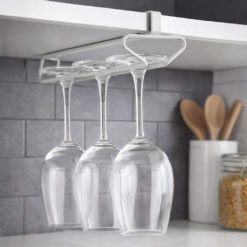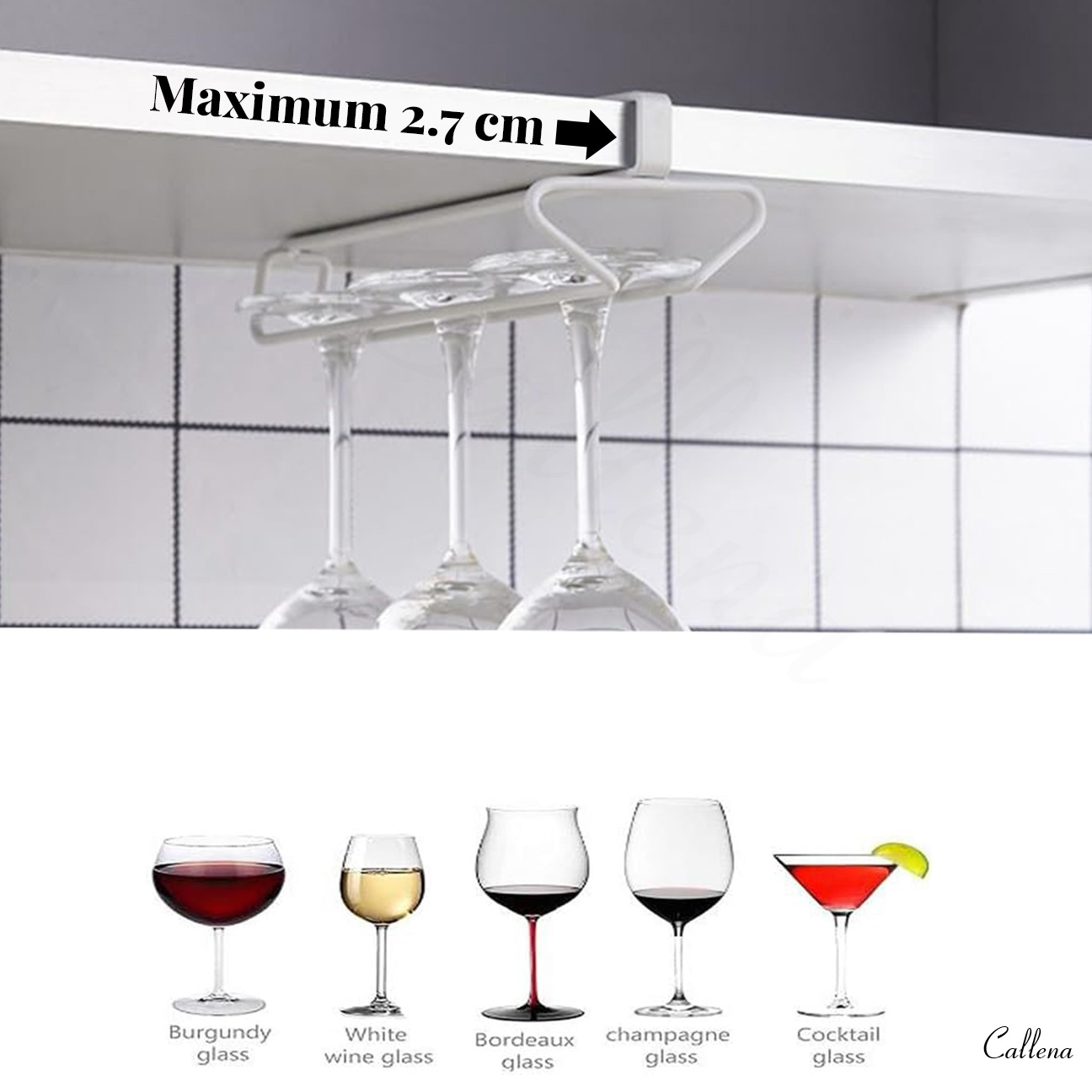 Suport pahare cu picior, suport pahare suspendat pentru bucatarie, bar, universal, otel, tip sina, alb, 25.5x9x7cm, Callena