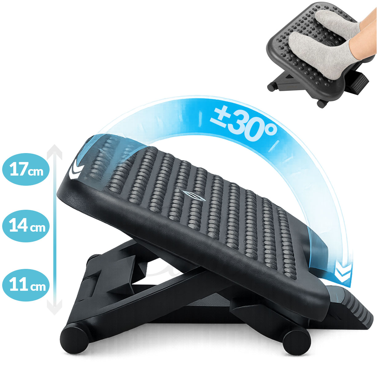 Suport picioare birou, suport ergonomic si reglabil pe 3 inaltimi, inclinare ±30°, negru, pentru acasa, birou, 46x35x11cm, Callena